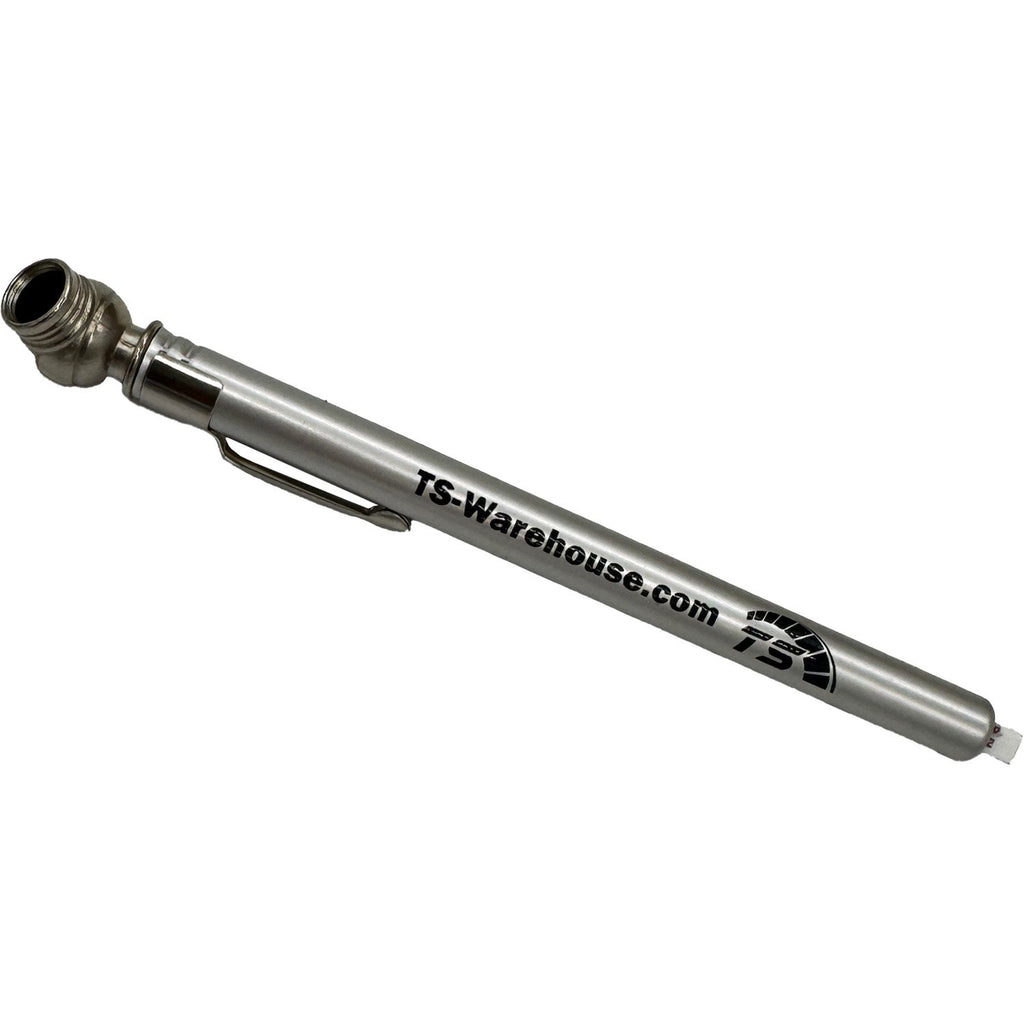 This high pressure pencil style air gauge has an all metal chrome construction with a plastic indicator bar which has a pressure range between 10-50 psi. TS-Warehouse Logo. Made in the USA.