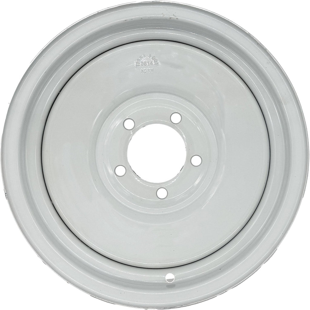 14x5.5 white steel trailer wheel with a 5 on 4.5 bolt pattern and 2205 load capacity.
