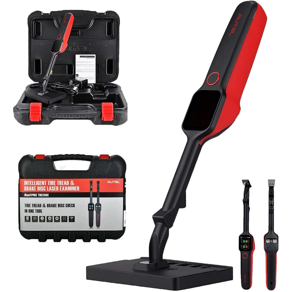 The MaxiTPMS TBE100 is a laser-enabled tire tread depth & brake disc wear examiner that provides users with quick and accurate tire wear measurements. Measure brake disc wear without having to remove tires. Features a 1.65” AMOLED touchscreen display, 4-megapixel, 4 cm macro camera. Use alone or with ITS600 Advanced Tire Service tablet to produce detailed reports. Laser measurement with 0.1mm accuracy. This lightweight tool features a rechargeable 1300 mAh Lithium-Ion Battery. Package Contents: TBE100, Calibration Table, Power Adapter, Type C USB Cable, Quick Reference Guide, Packing List, Carrying Case.