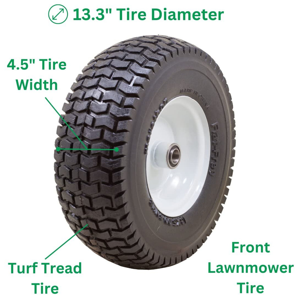 The Marathon Polyurethane Flat Free Turf Lawn and Garden Tire on Rim with bushings. Commonly used on lawn mowers. Assembled with a 3" Centered Hub with Bushings to fit a 3/4" Shaft. Rim has Bushings not Bearings; The heavy duty bushings are built to last and better equipped to handle the application.