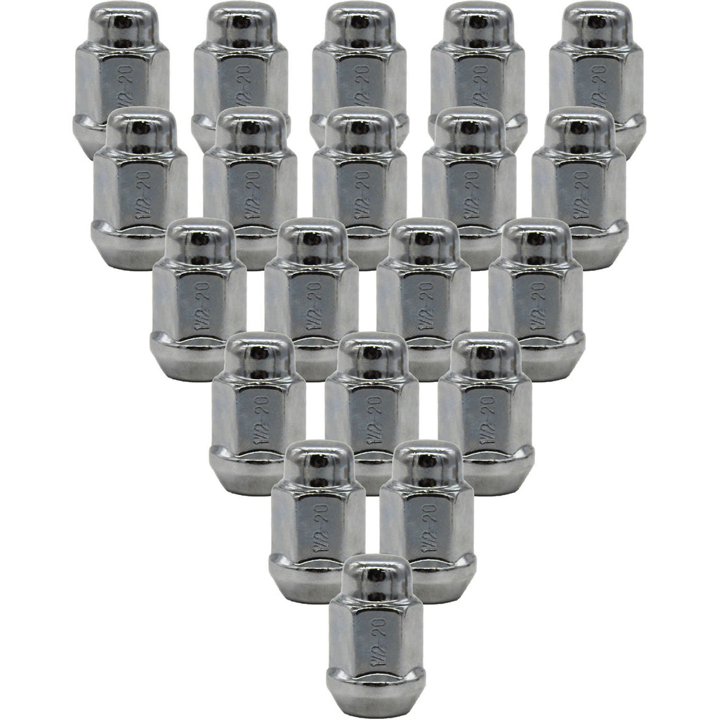 These 1/2"-20 Bulge Acorn lug nuts are the ideal replacement for worn, rusted, or missing factory nuts on a wide range of Ford, Jeep, Dodge, and Lincoln vehicles. Designed with a standard 3/4" (19mm) Hex, these nuts fit standard lug wrenches and sockets found in most garages. The Bulge Acorn design offers a significant safety upgrade over standard narrow nuts by providing a wider seating surface area. This ensures a stronger clamp load and prevents the nut from damaging aluminum alloy wheels.*Always verify your specific vehicle year and wheel type before purchasing.*