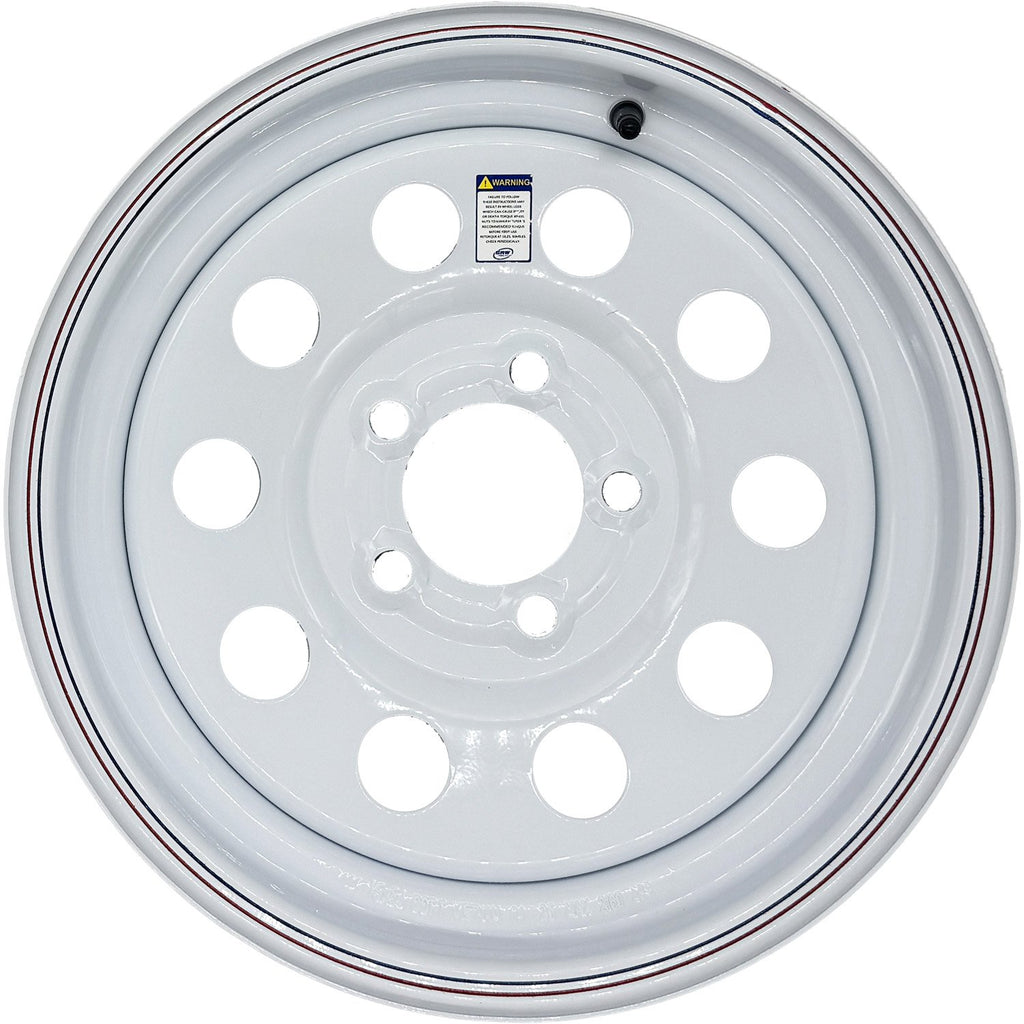 15x5 white with red & blue pin stripes modular steel trailer with a 5 on 5.5 bolt pattern and 2160 load capacity.