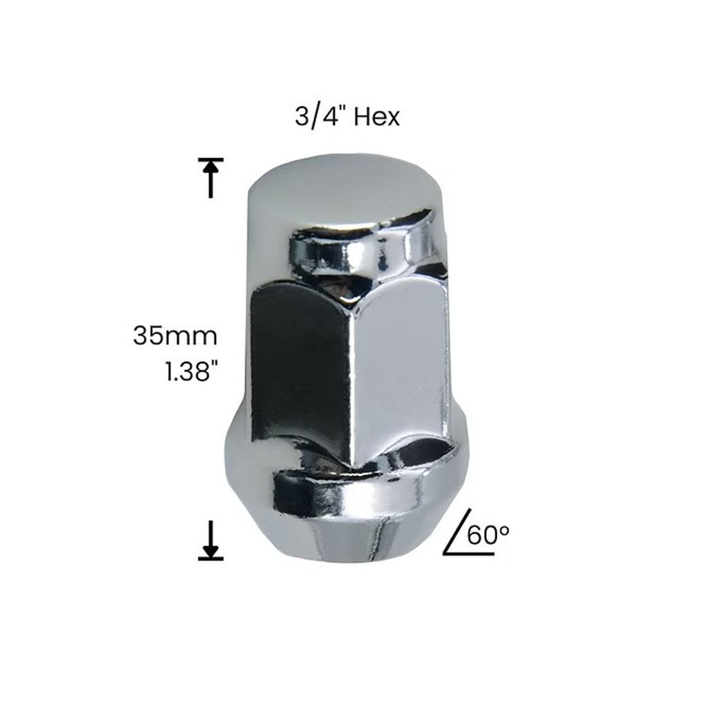 These M12x1.50 Bulge Acorn lug nuts are the gold standard for reliable wheel fitment. Featuring a compact 3/4" (19mm) Hex, these nuts are designed to fit the vast majority of passenger cars and compact SUVs on the road today. Whether you are replacing swollen factory nuts on a Ford or installing new aftermarket wheels on a Honda, these nuts provide the safety and durability you need. The Bulge Acorn design features a widened seating surface, ensuring maximum clamping force to prevent wheels from loosening.*Always verify your specific vehicle year and wheel type before purchasing.*