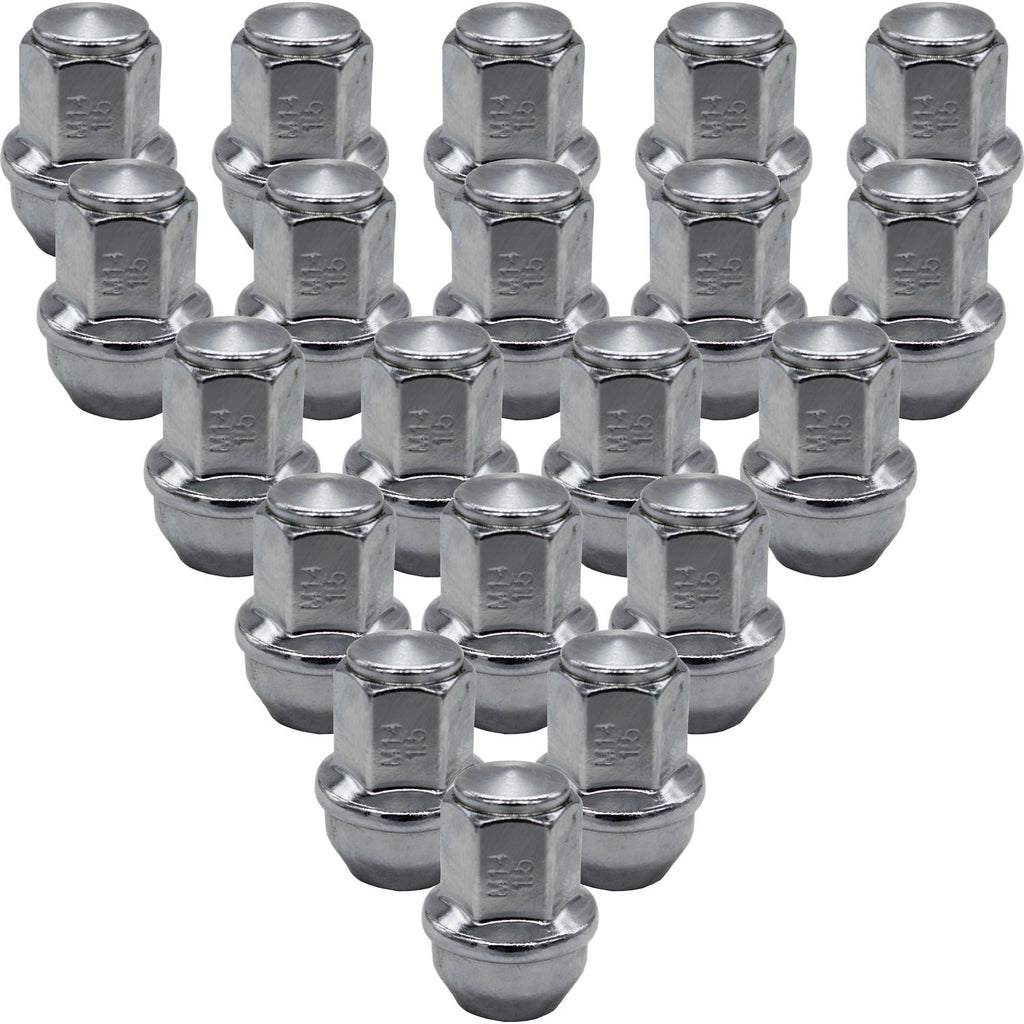 Eliminate the frustration of swollen factory lug nuts with these heavy-duty M14x1.50 Bulge Acorn replacements. Designed specifically for modern Ford F-150s, Expeditions, and Mustangs, these nuts feature the correct 13/16" (21mm) Hex to match your trucks original equipment. Unlike the factory Ford nuts which are a two-piece design (a steel core with a cosmetic tin cap that swells and deforms), these are crafted from [Solid One-Piece] steel. They provide the rugged durability required for heavy trucks and high-performance cars, ensuring your lug wrench fits perfectly every time.*Always verify your specific vehicle year and wheel type before purchasing.*
